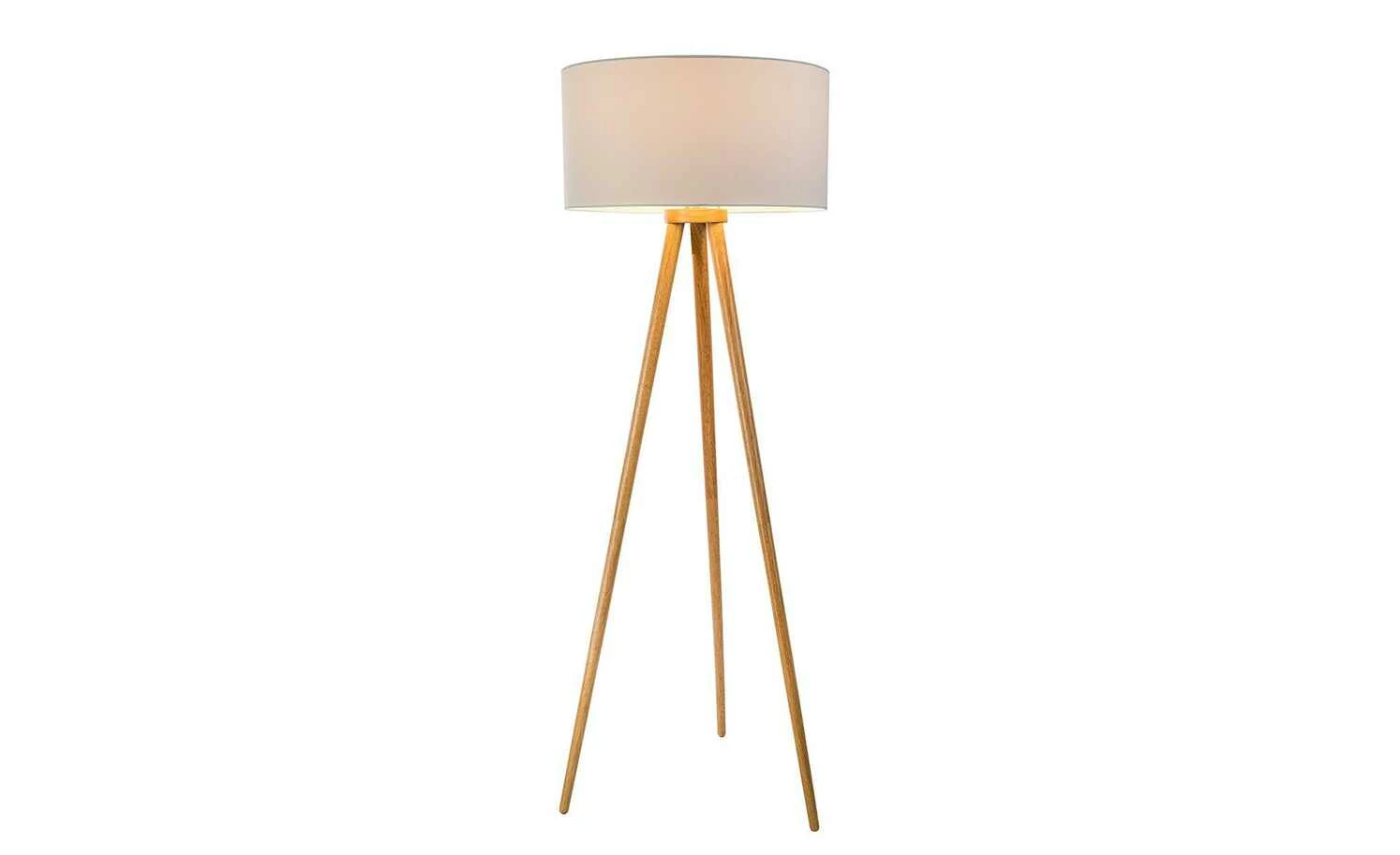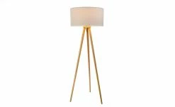 3 Bein-Stehleuchte, 1-flammig, Holz/Stoff