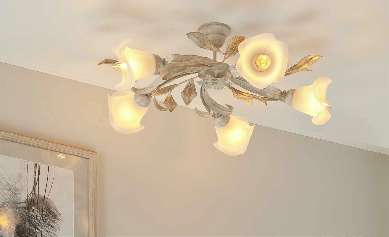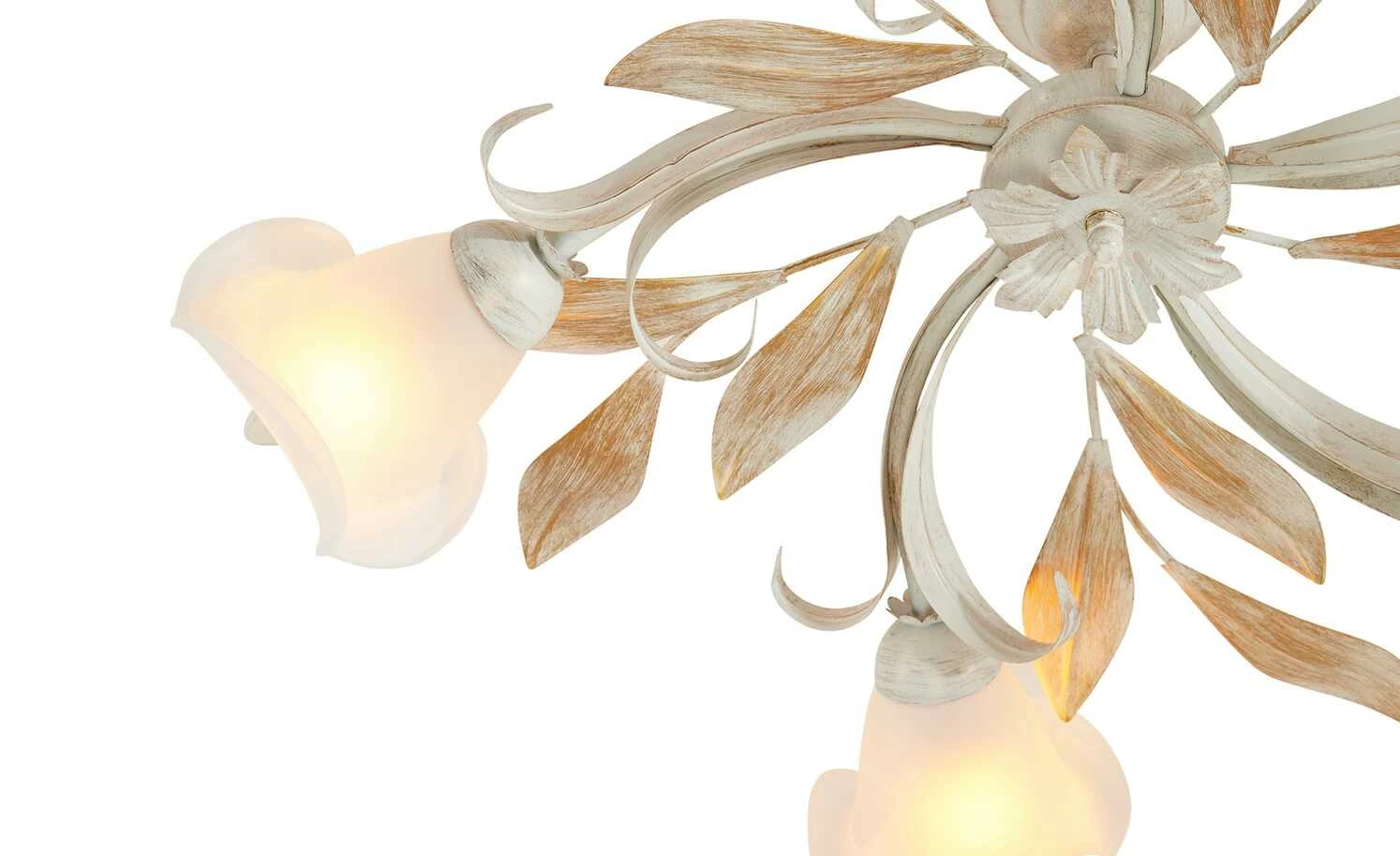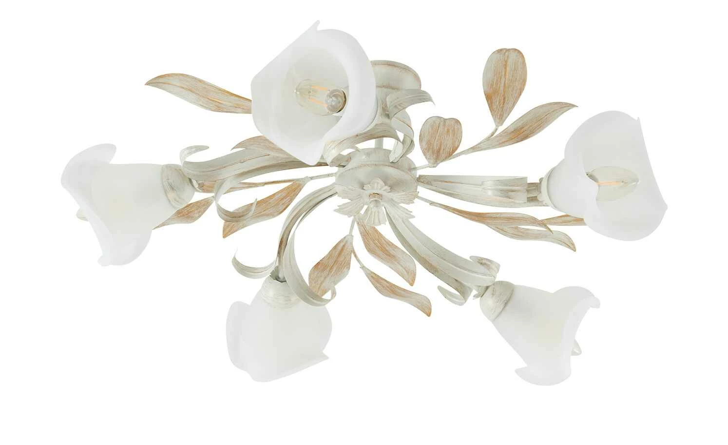 Deckenleuchte, 5-flammig weiß/goldfarben abgesetzt