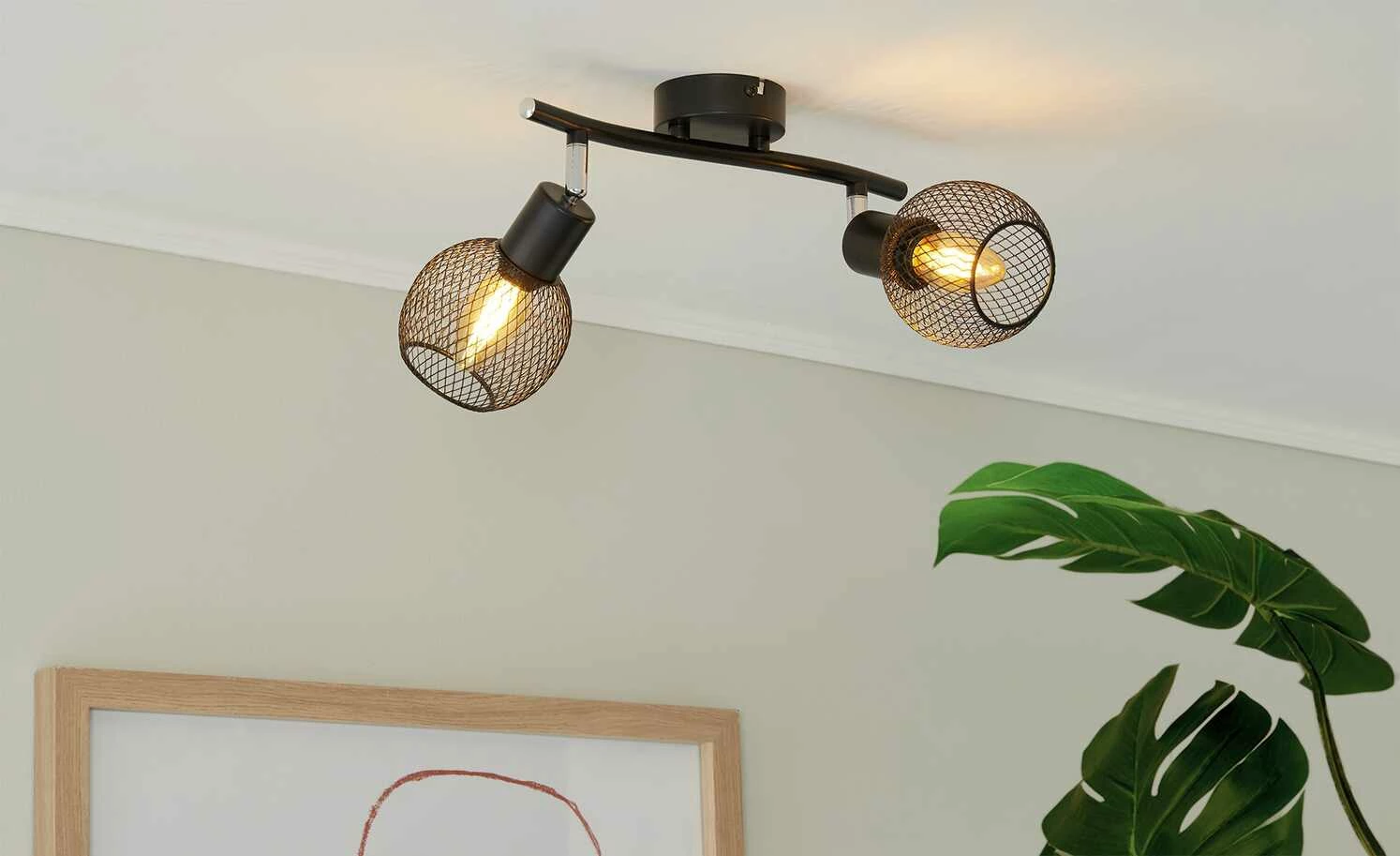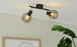 Deckenstrahler, 2-flammig, Drahtschirm schwarz