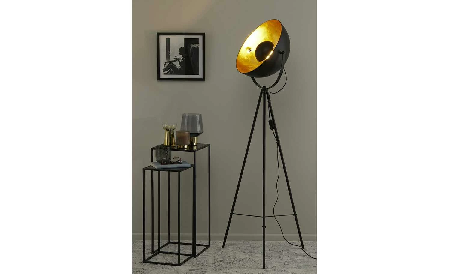 Dreibein-Stehleuchte, 1-flammig,schwarz/goldfarben