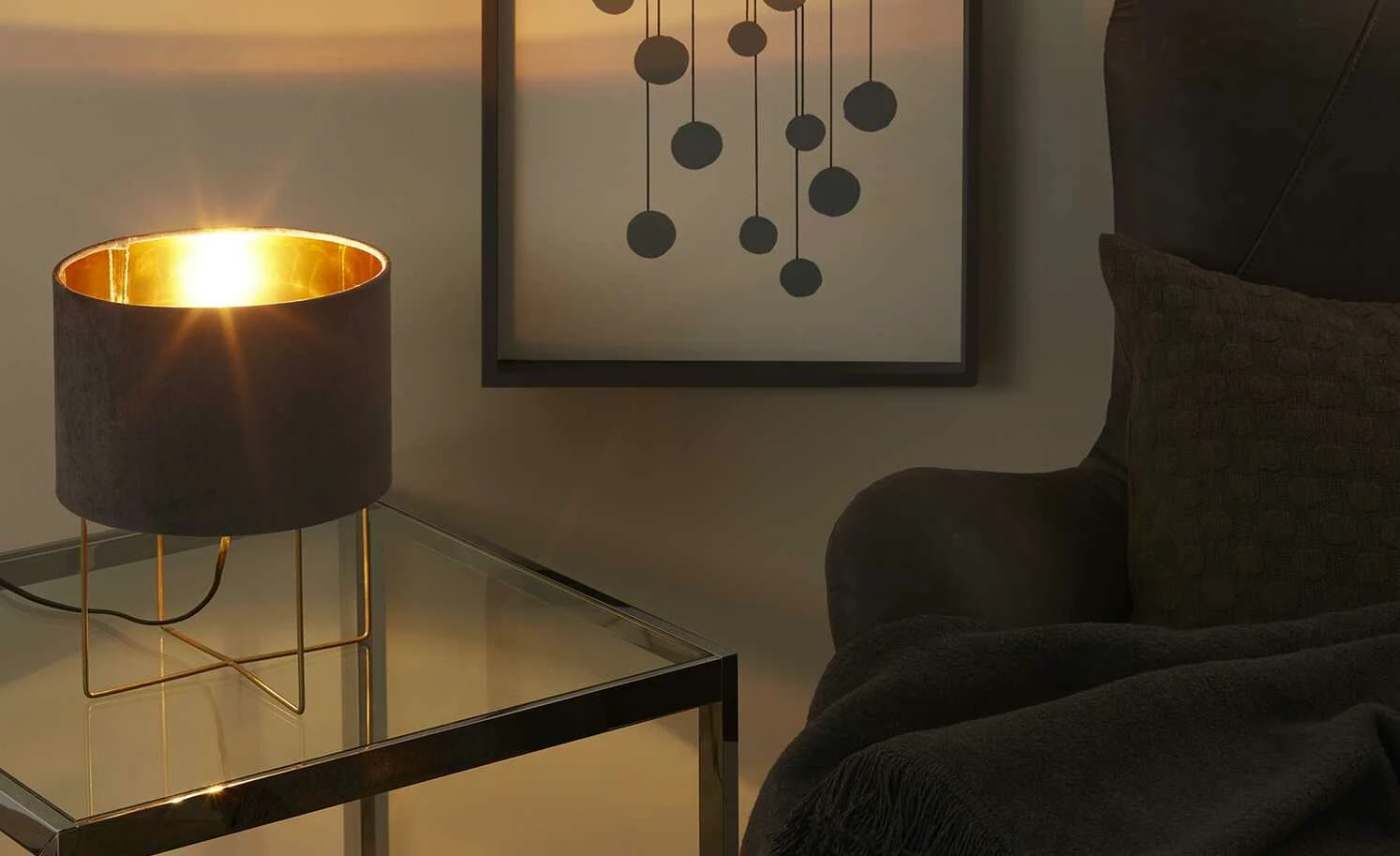Fischer-Honsel Tischleuchte, 1-flammig, grau Samt `klein´