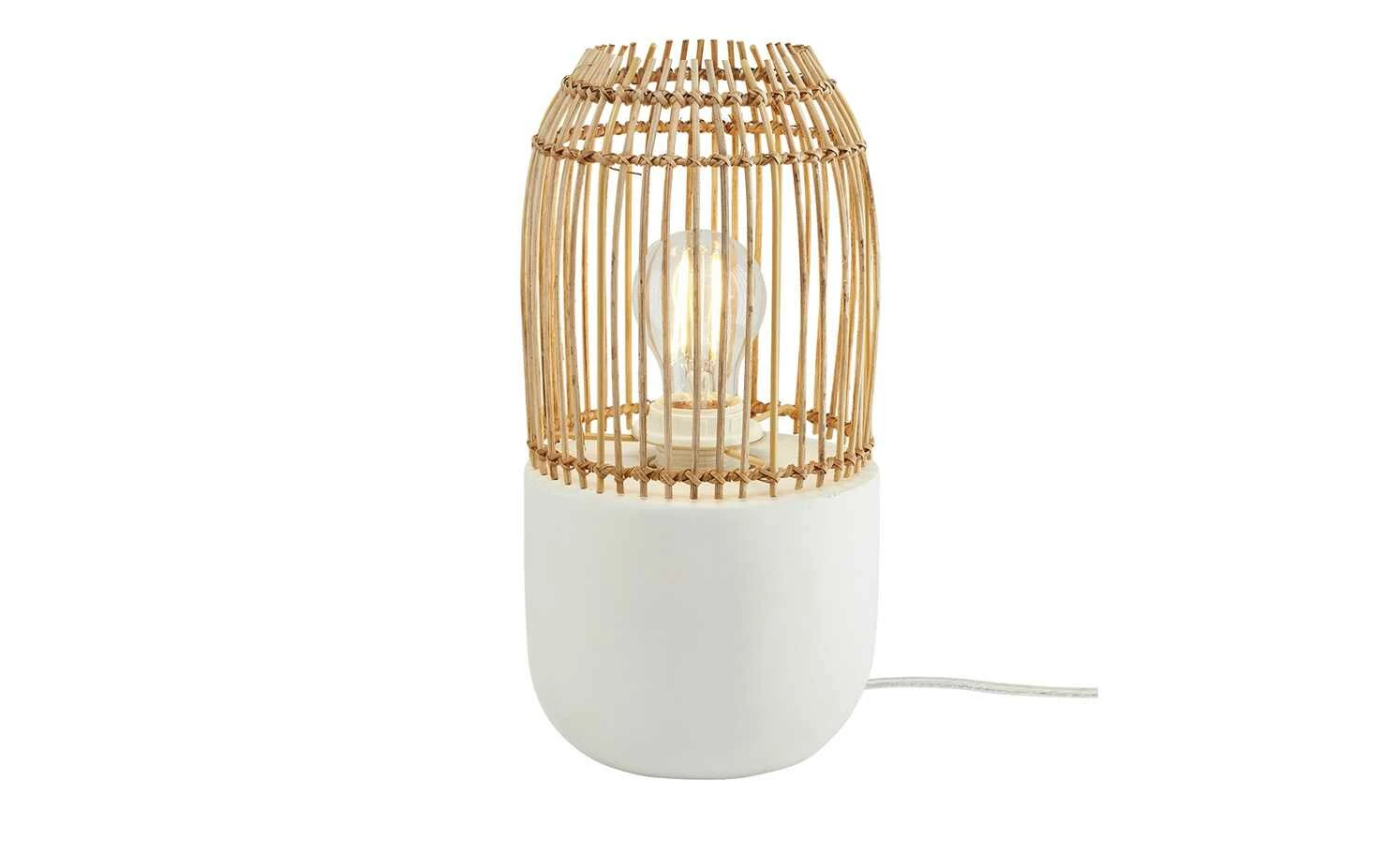 HOME STORY Beton-Tischleuchte, 1-flammig, Korbweidenschirm