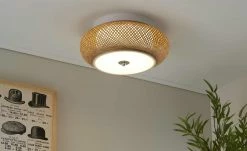 HOME STORY LED-Deckenleuchte, Rattan / weiß
