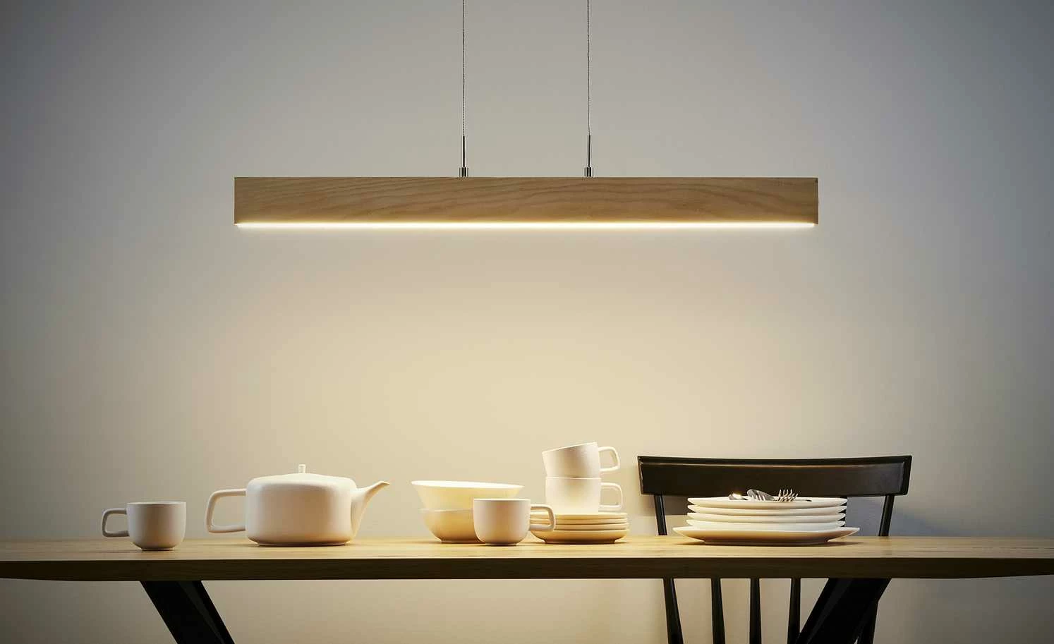 HOME STORY LED-Holz-Pendelleuchte, 1-flammig mit Dimmer