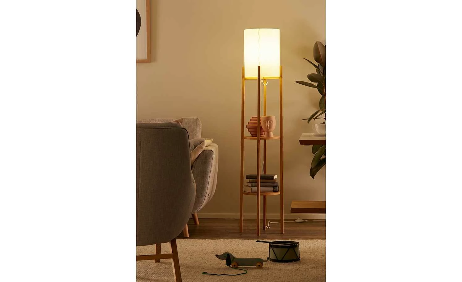 HOME STORY Stehleuchte, 1-flammig, Bambus mit Ablage