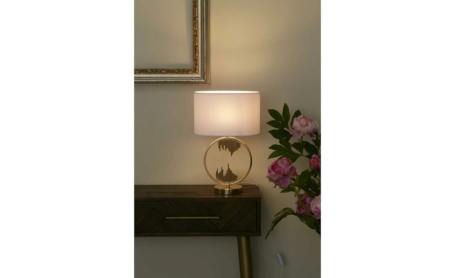 HOME STORY Tischleuchte, 1-flammig, goldfarben/ Schirm weiß