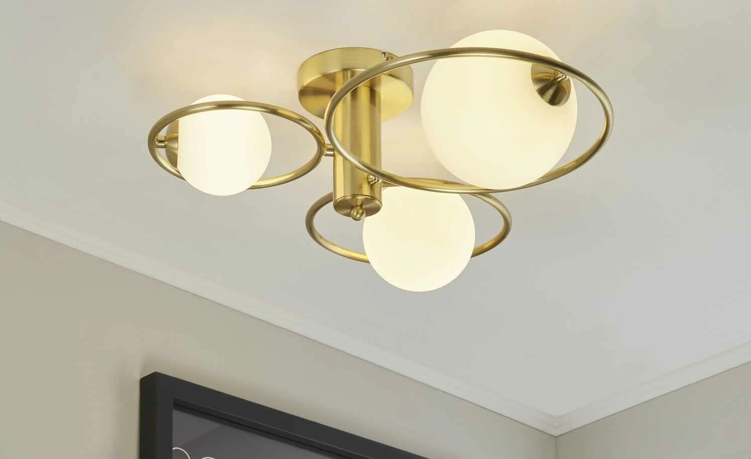 KHG Deckenleuchte, 3-flammig, Messing mit Glaskugeln