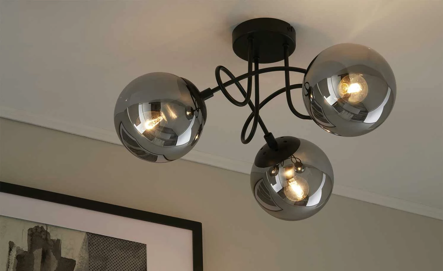 KHG Deckenleuchte, 3-flammig, schwarz/Rauchglas