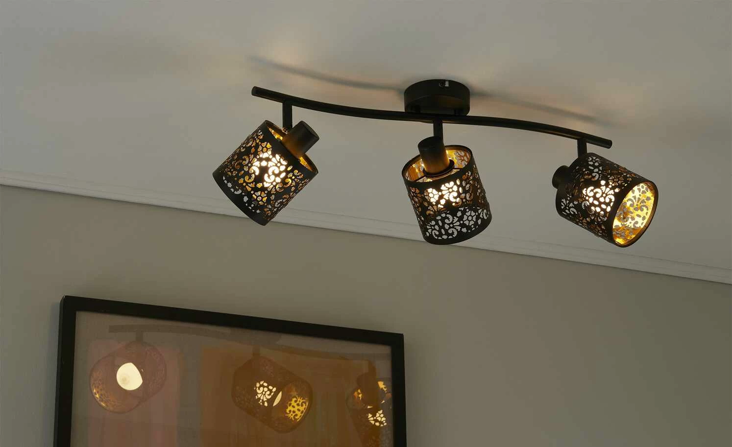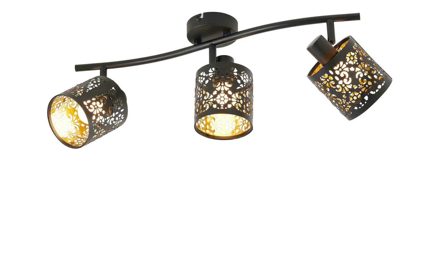 KHG Deckenstrahler, 3-flammig, schwarz/gold mit Stanzung