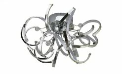 Dieser voluminös gestaltete Kronleuchter ist ein echter Blickfang für Ihren Wohnraum. Der Kronleuchter ist aus Messing hergestellt und überzeugt durch seine einfallsreiche Gestaltung. Über vier Streben ist der rundlich gestaltete Korpus mit dem Sockel verbunden, die fünf Flammen sorgen für angenehme Lichtakzente. Das für die Lampengläser verwendete weiße Glas harmoniert hervorragend mit dem Messing des Korpus und sorgt so für ein stimmiges, attraktives Gesamtbild.