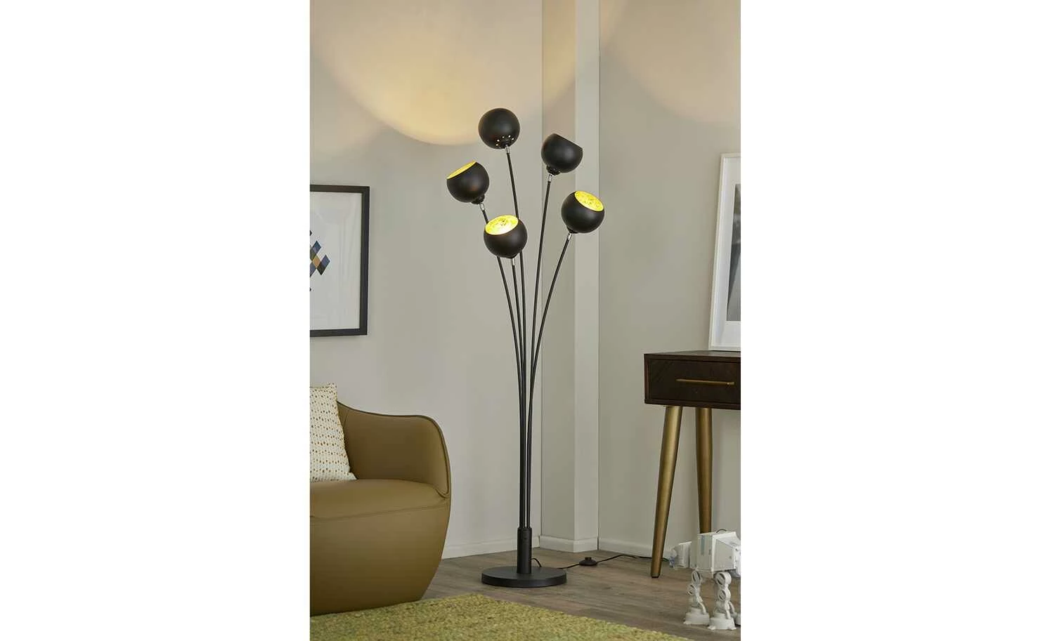 KHG Stehleuchte, 5-flammig, schwarz/goldfarben