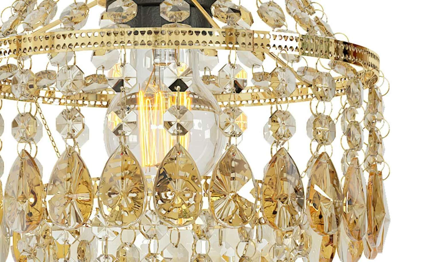 Kronleuchter, 1-flammig, goldfarbener Behang