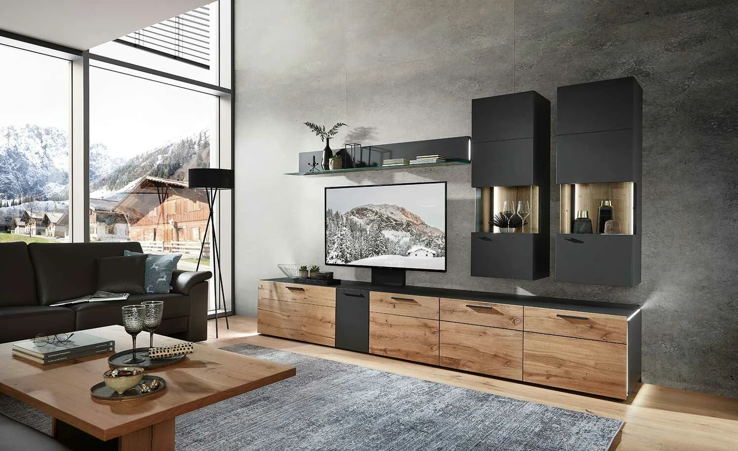 - Lieferumfang / mitgeliefertes Zubehör: 2x LED-Korpusseitenbeleuchtung 7,2 Watt für TV-Unterteile, 2x LED-Rückwandbeleuchtung 4,0 Watt für Hängeelemente, Trafo-Set für max. 30 Watt und Fernsteuerungs-Set, LED-Wandbordbeleuchtung 1,8 Watt