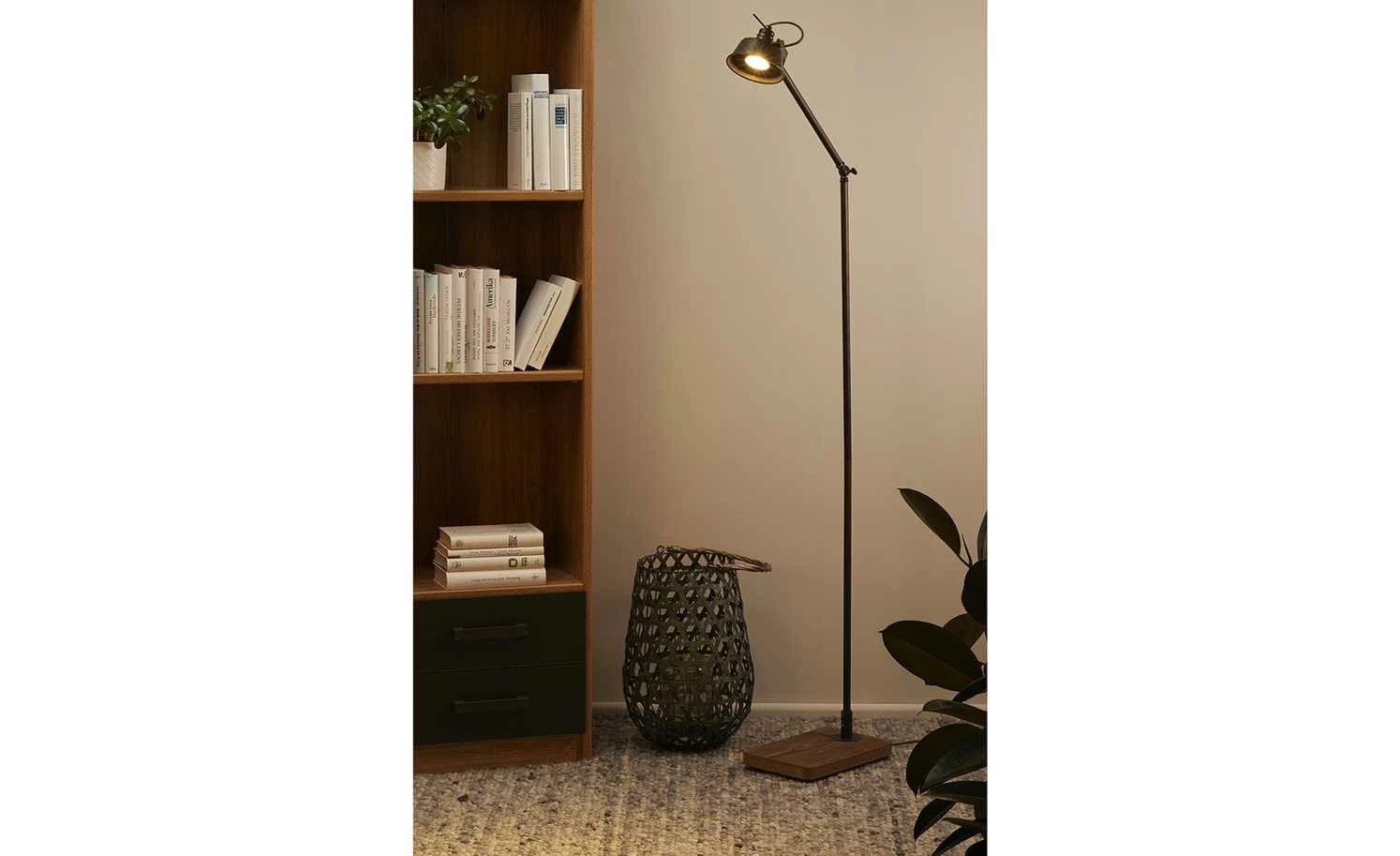Leseleuchte, 1-flammig, Metall / Holz schwarz