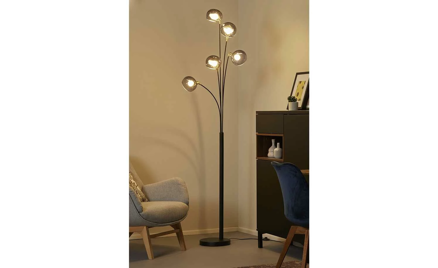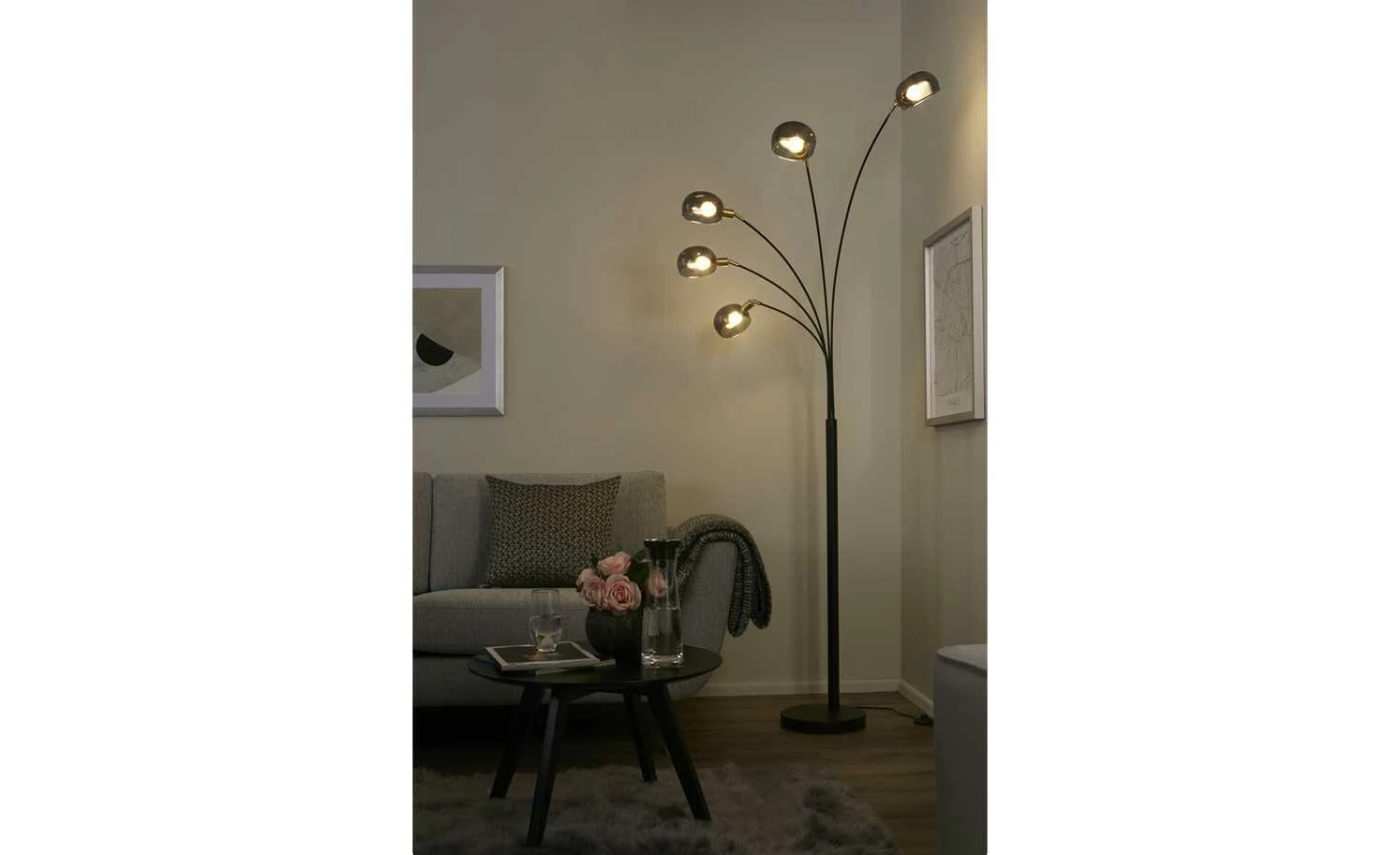 Meisterleuchten Bogenleuchte, 5-flammig, schwarz / Rauchglas