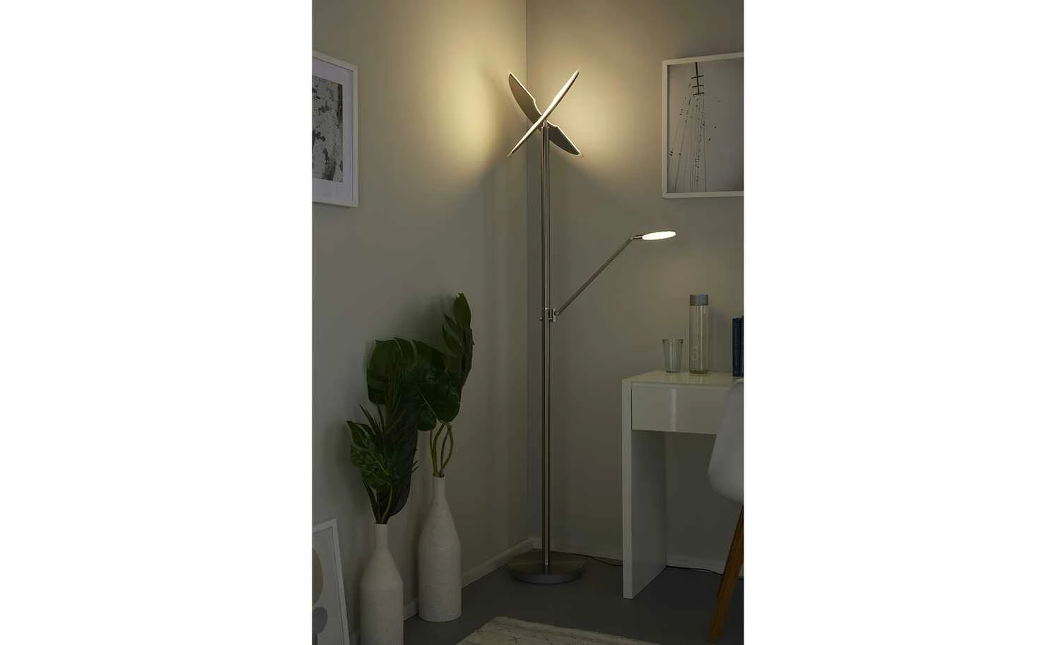 Meisterleuchten LED-Deckenfluter, 3-flammig, Nickel-matt/ chrom
