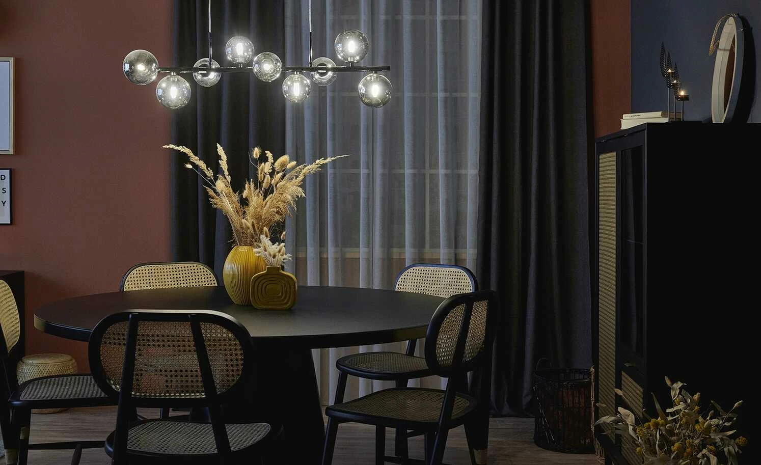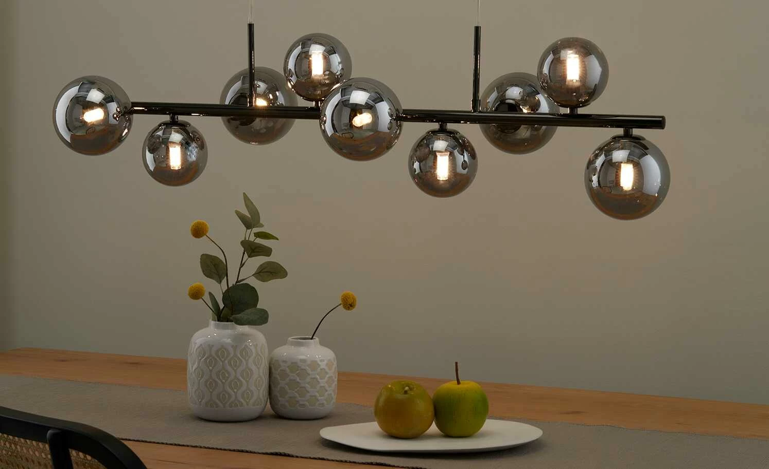 Meisterleuchten Pendelleuchte, 9-flammig, schwarzchrom, Rauchglas