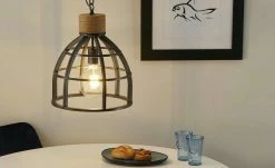 Pendelleuchte, 1-flammig, schwarz/holzfarben