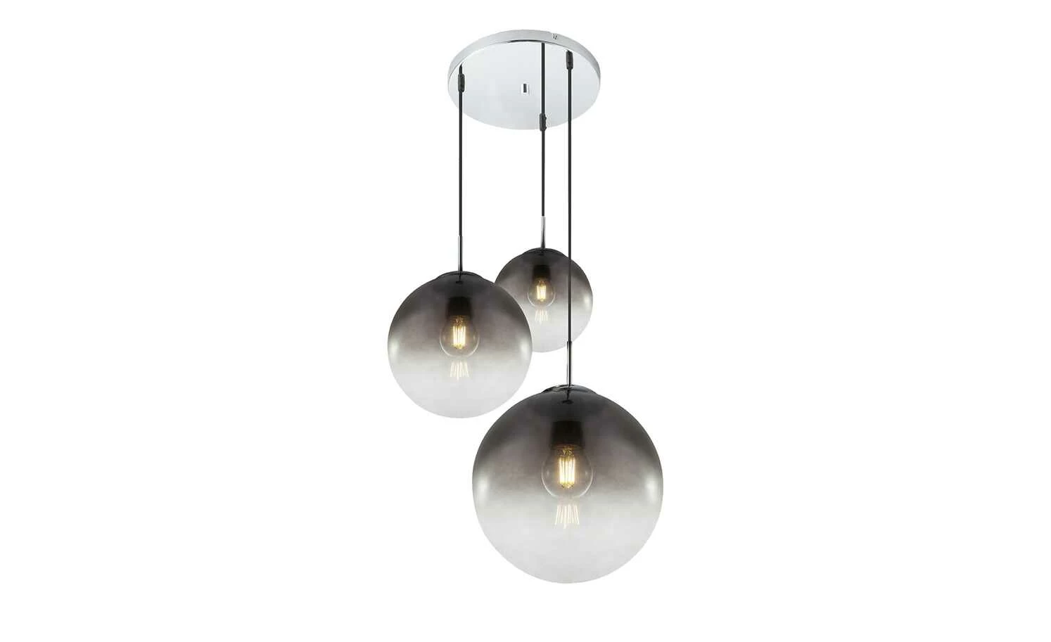 Pendelleuchte, 3-flammig, Rauchglas-Kugeln