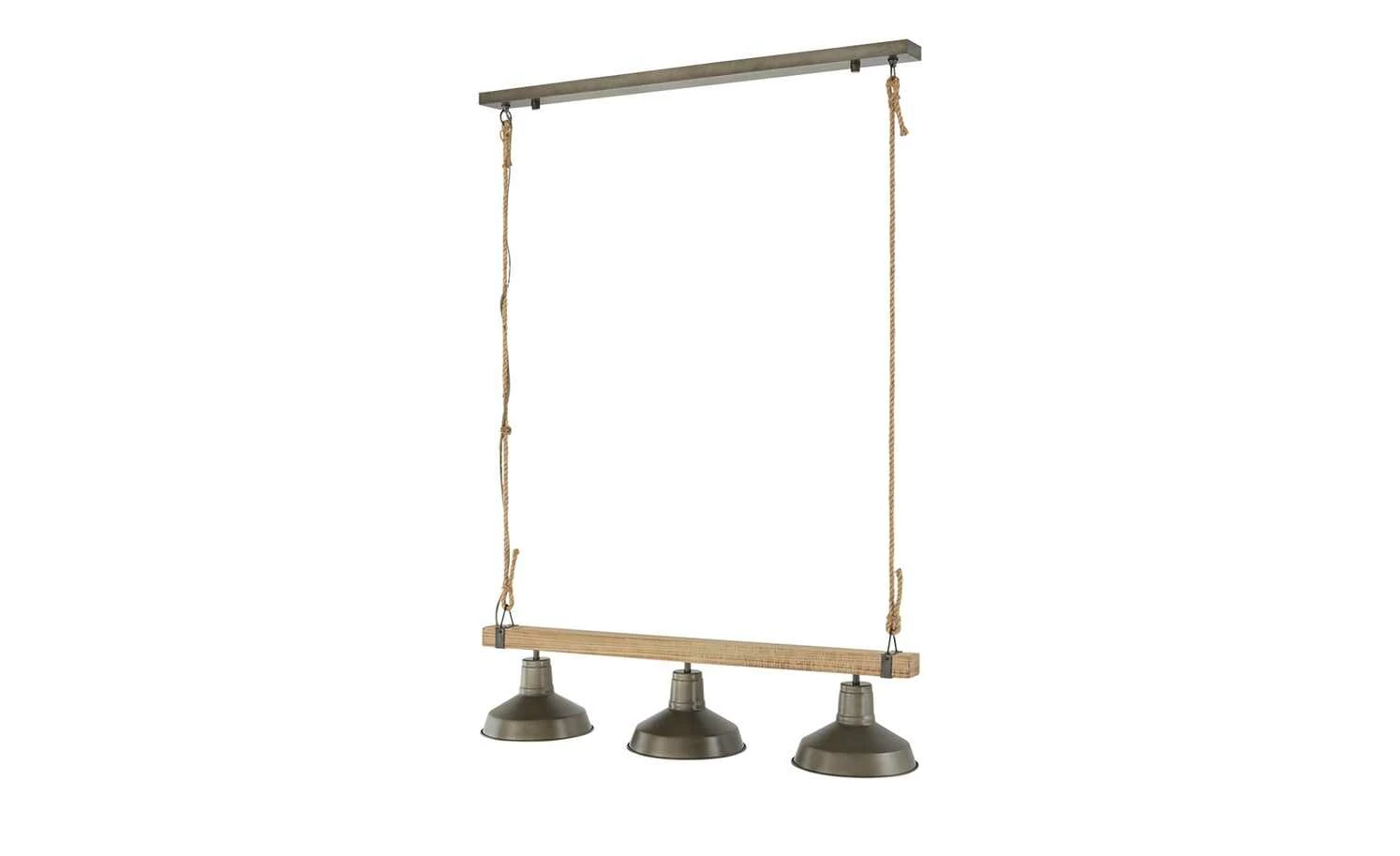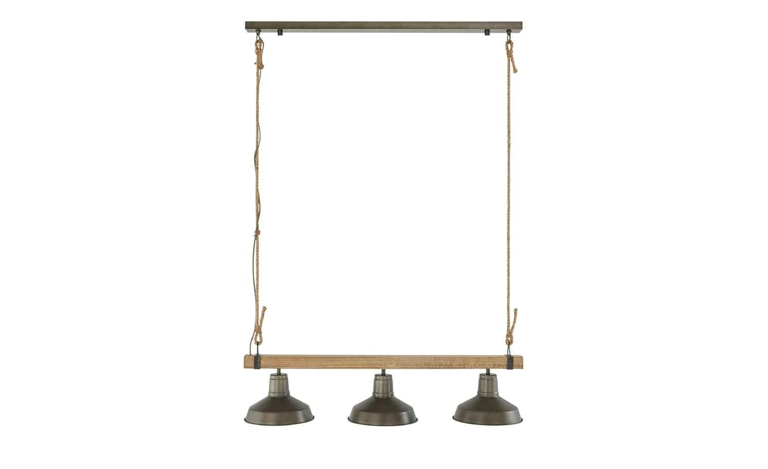 Pendelleuchte, 3-flammig, schwarz/Holz mit Tau