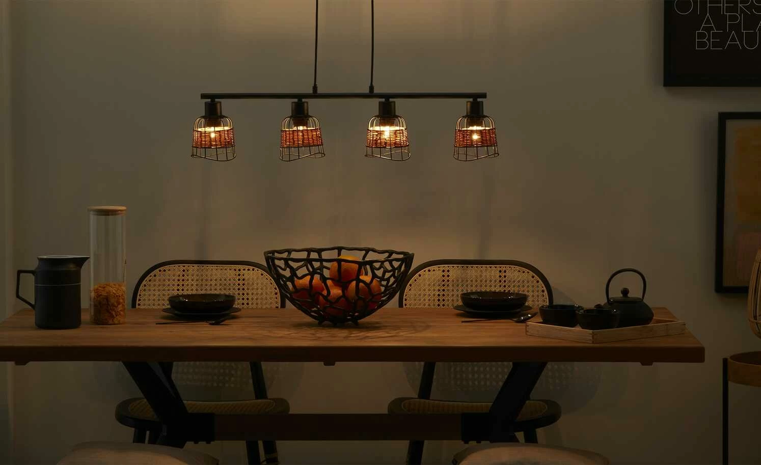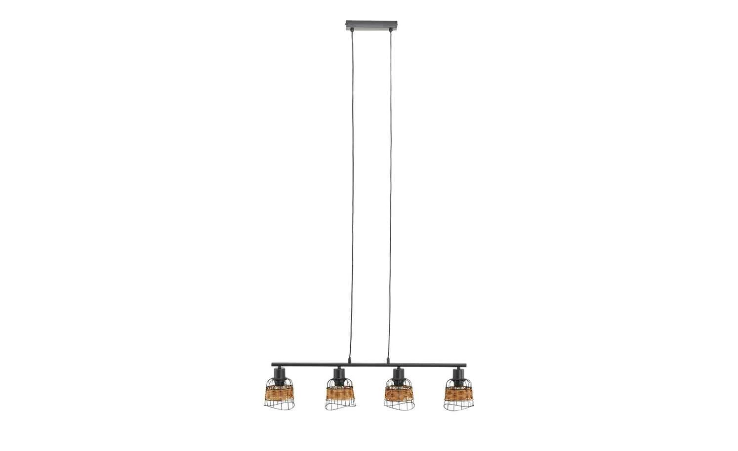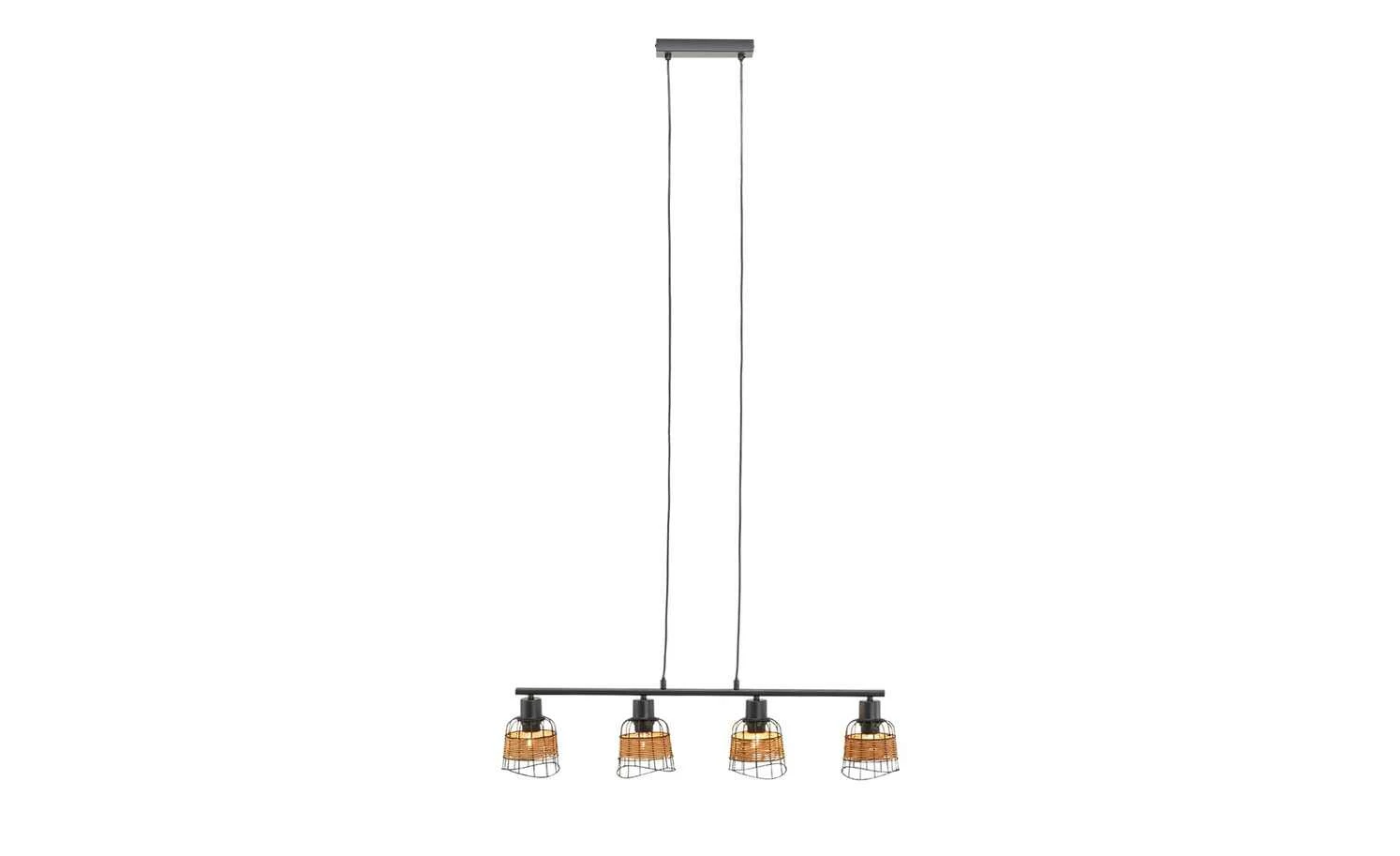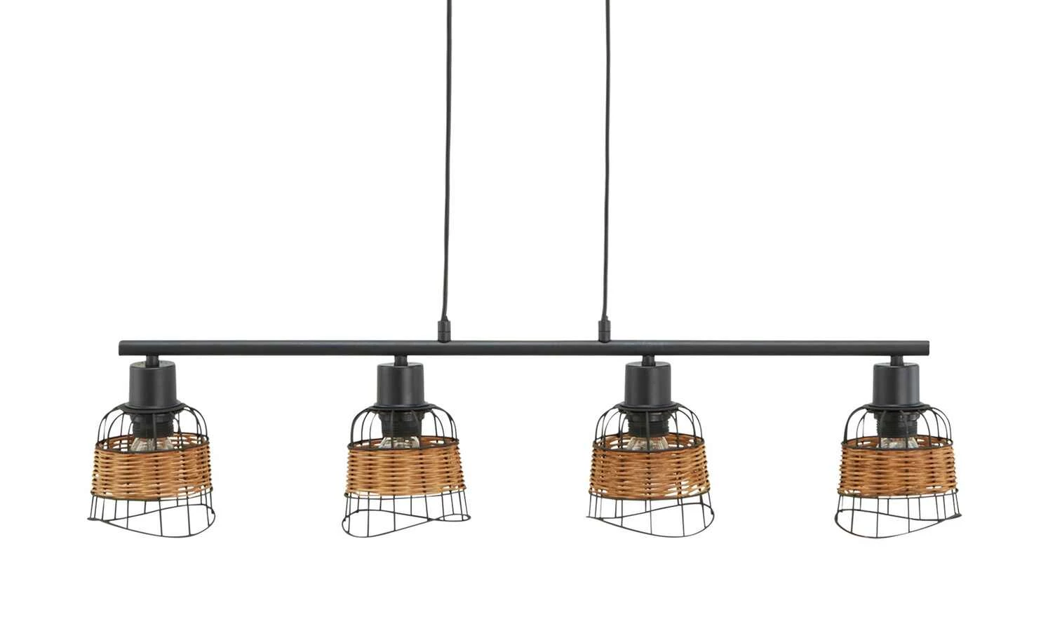 Pendelleuchte, 4-flammig, schwarz, Draht/ Rattan
