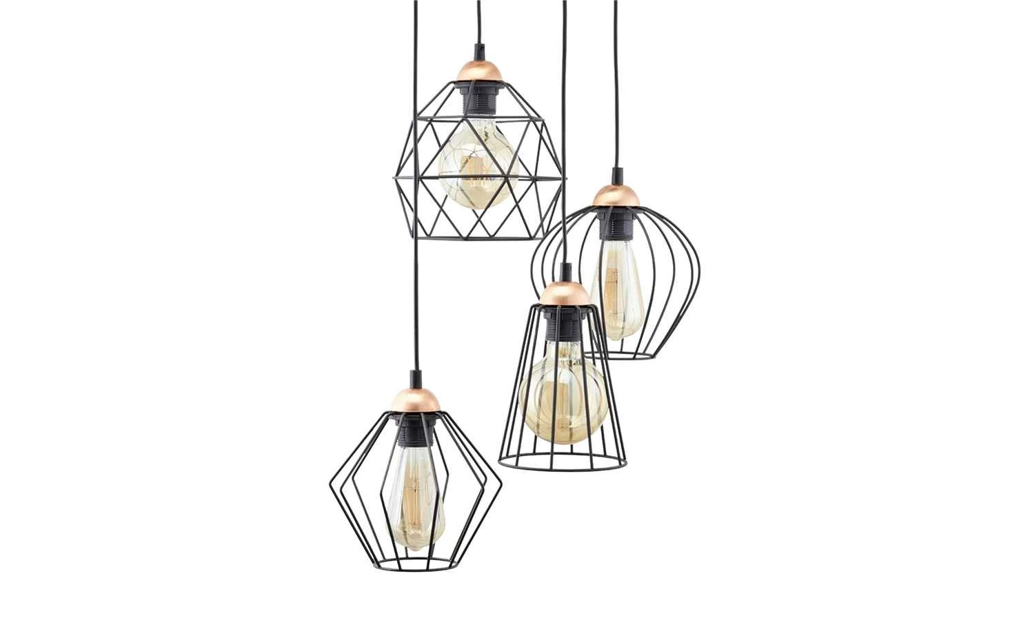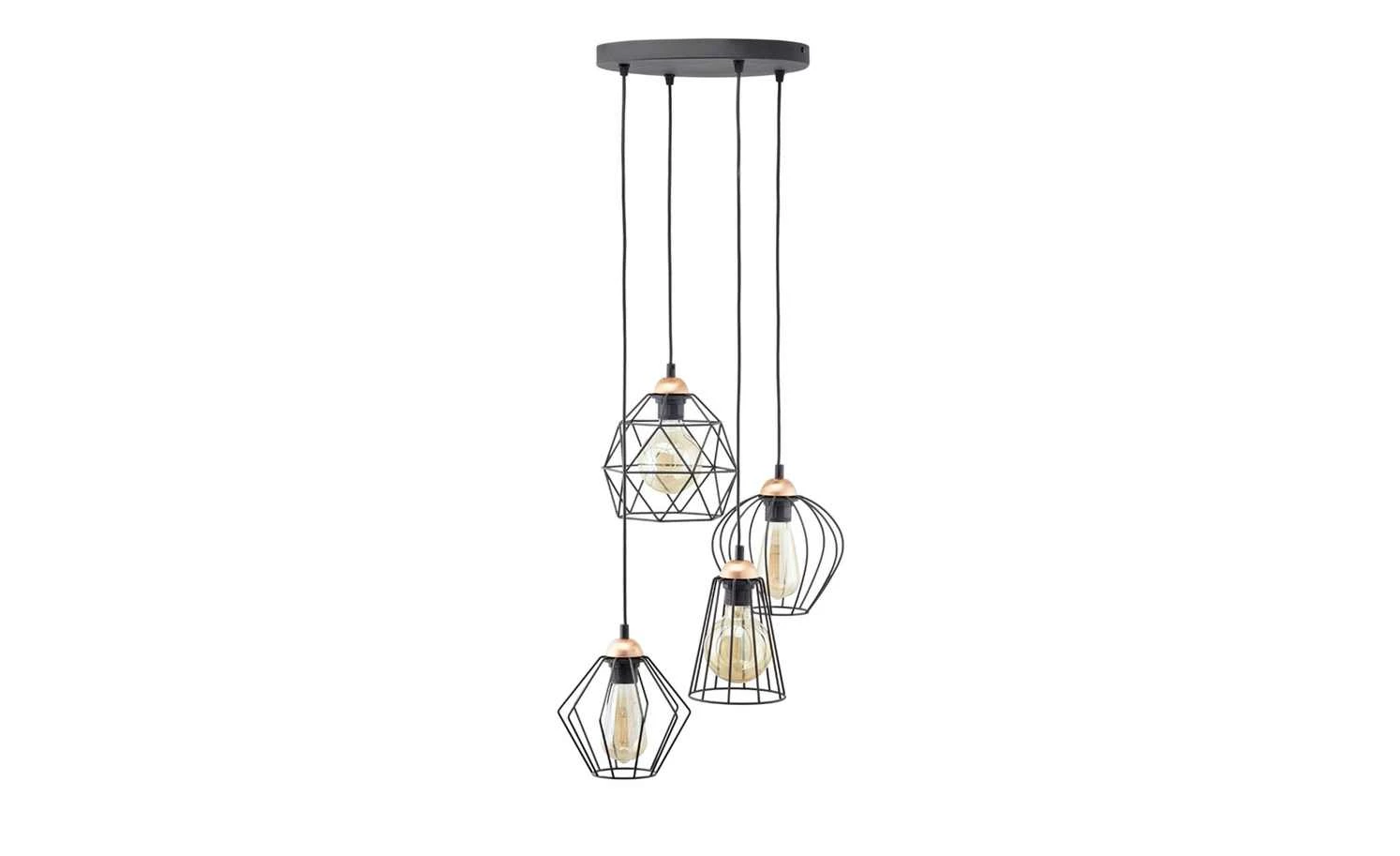 Pendelleuchte, 4-flammig, schwarz/ goldfarben