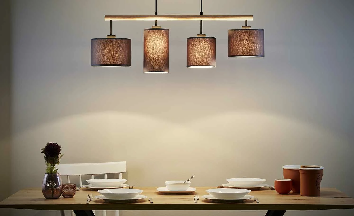 Pendelleuchte, 4-flammig, Stoffschirme grau