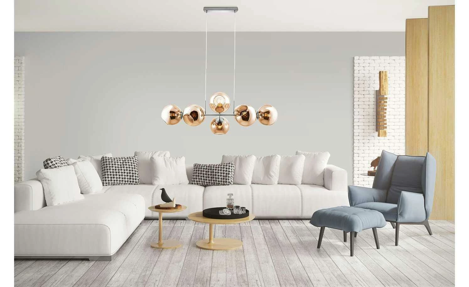 Pendelleuchte, 8-flammig, Glaskugeln kupferfarben