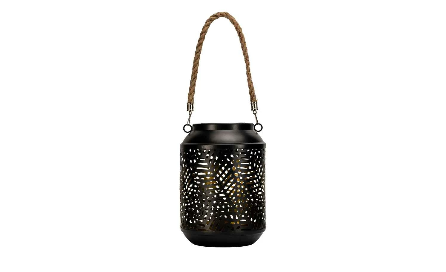 Solar-Tischleuchte, schwarz mit Seil Henkel