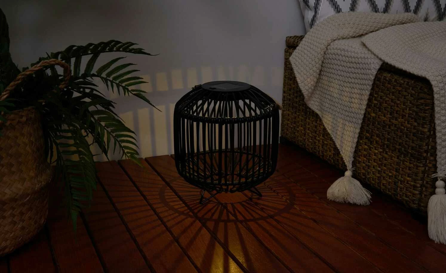 Solar-Tischleuchte schwarz mit Seil-Henkel