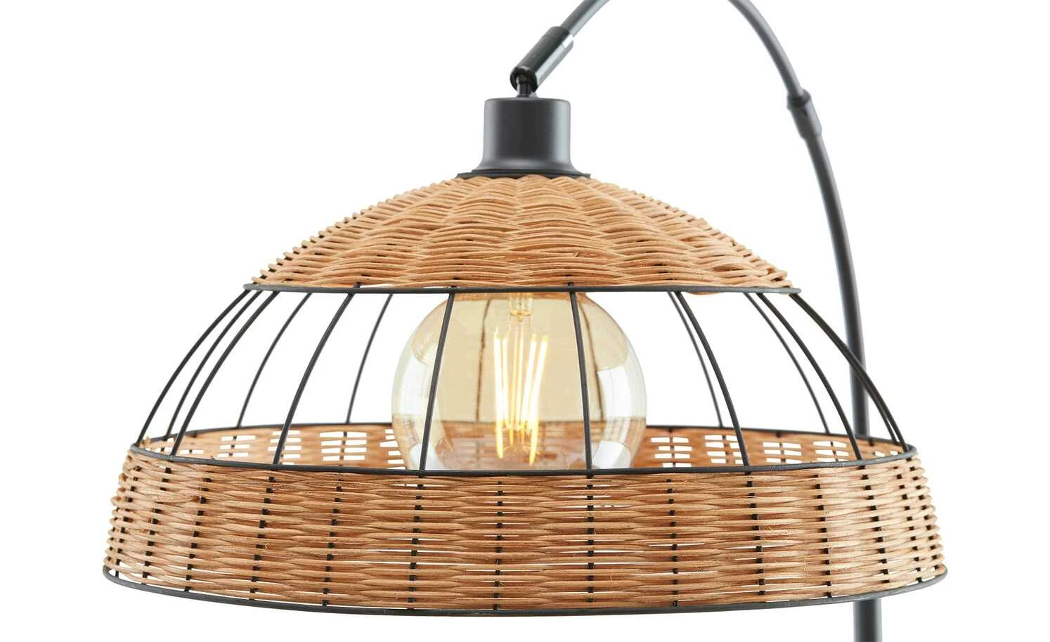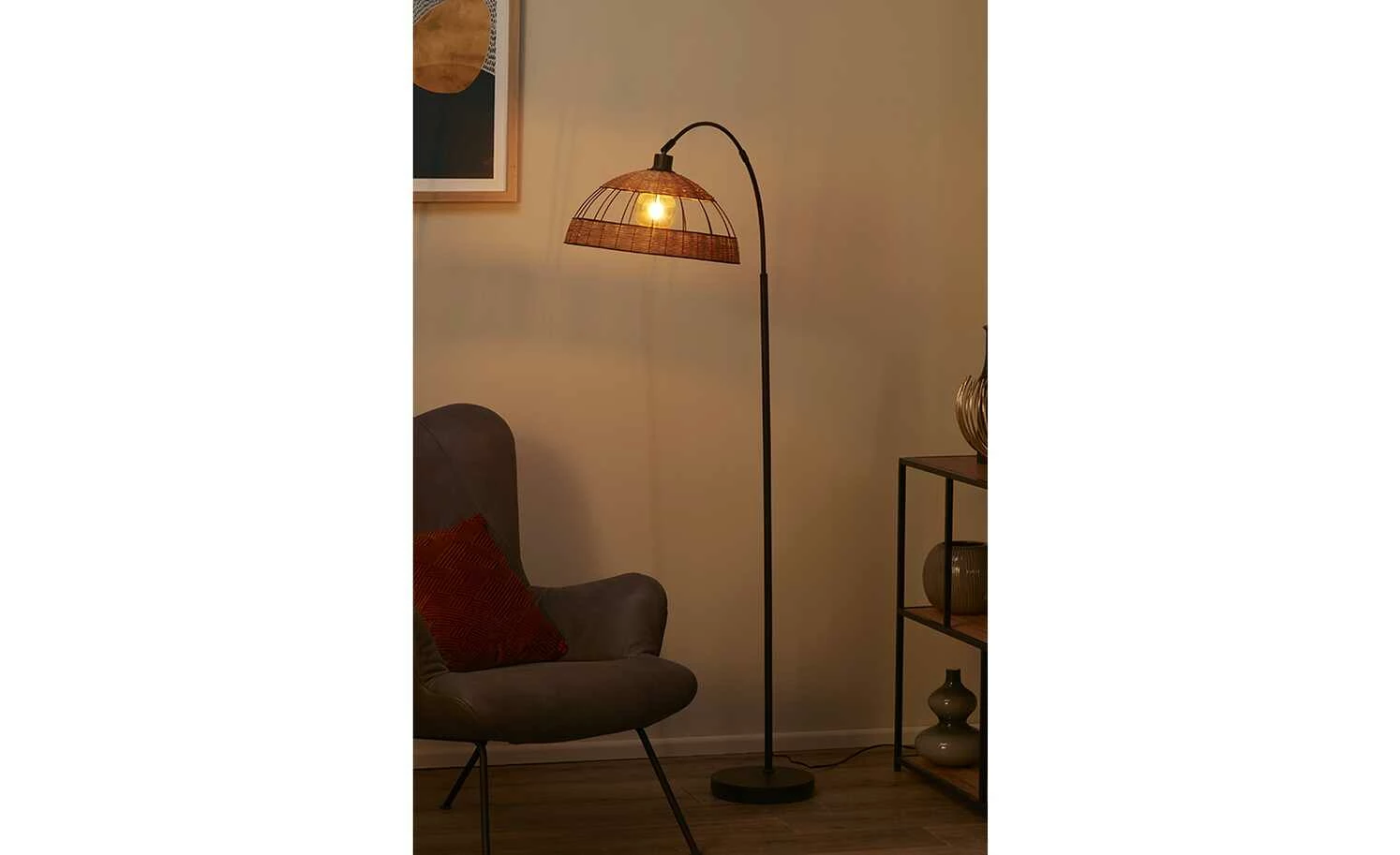 Stehleuchte 1-flammig, Rattan/ schwarz