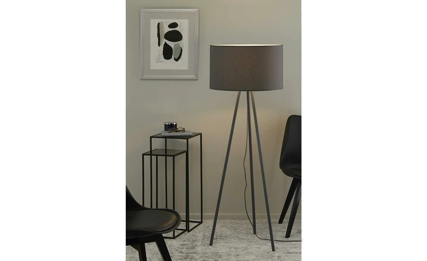Stehleuchte, 1-flammig, Stoffschirm grau