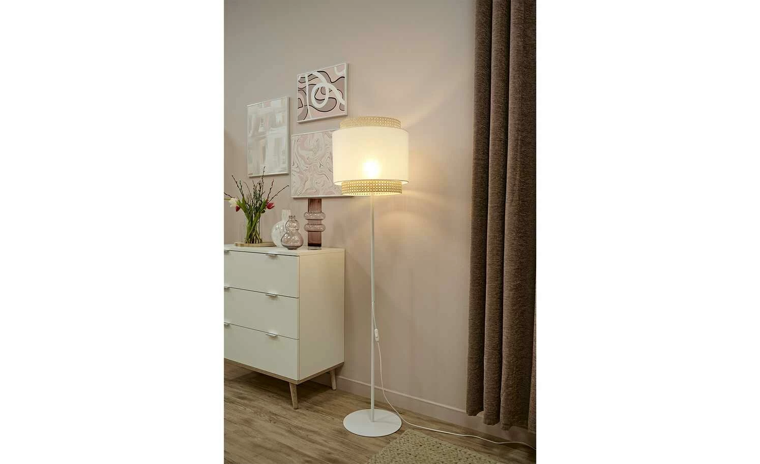 Stehleuchte, 1-flammig, Wiener Geflecht weiß