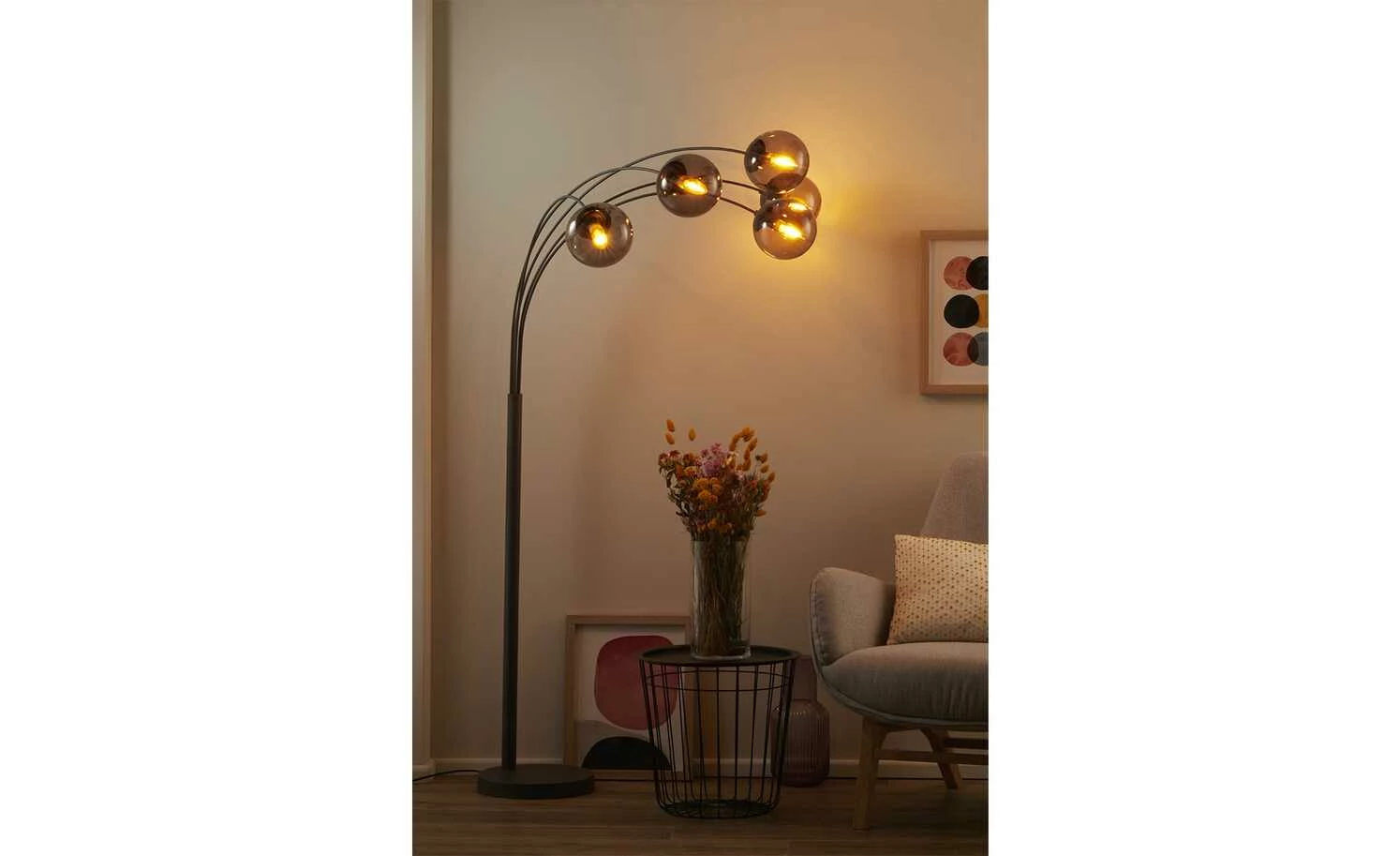 Trio Bogenleuchte, 5-flammig, anthrazit/ Rauchglas