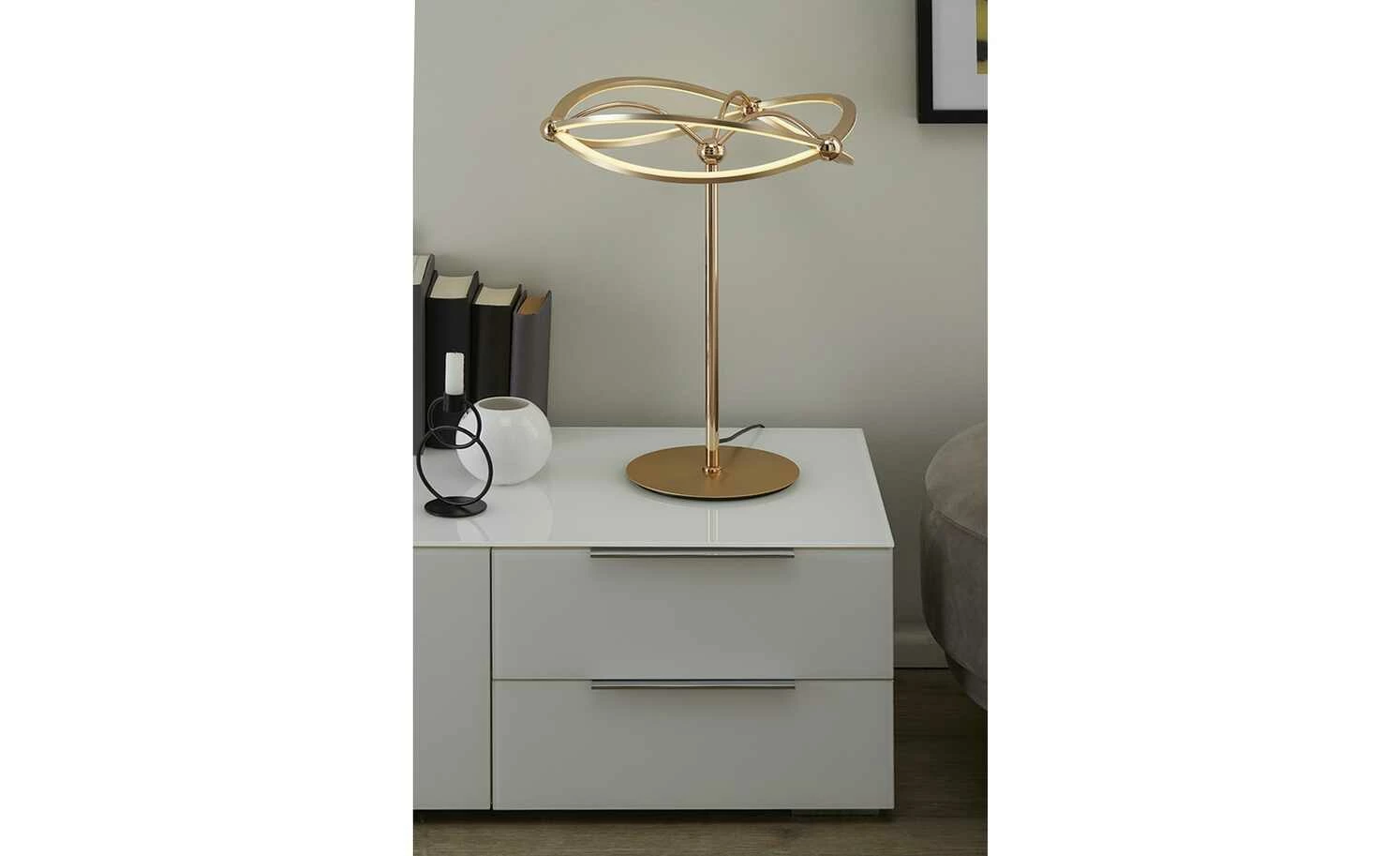 Trio LED-Tischleuchte, messing-matt, geschwungen
