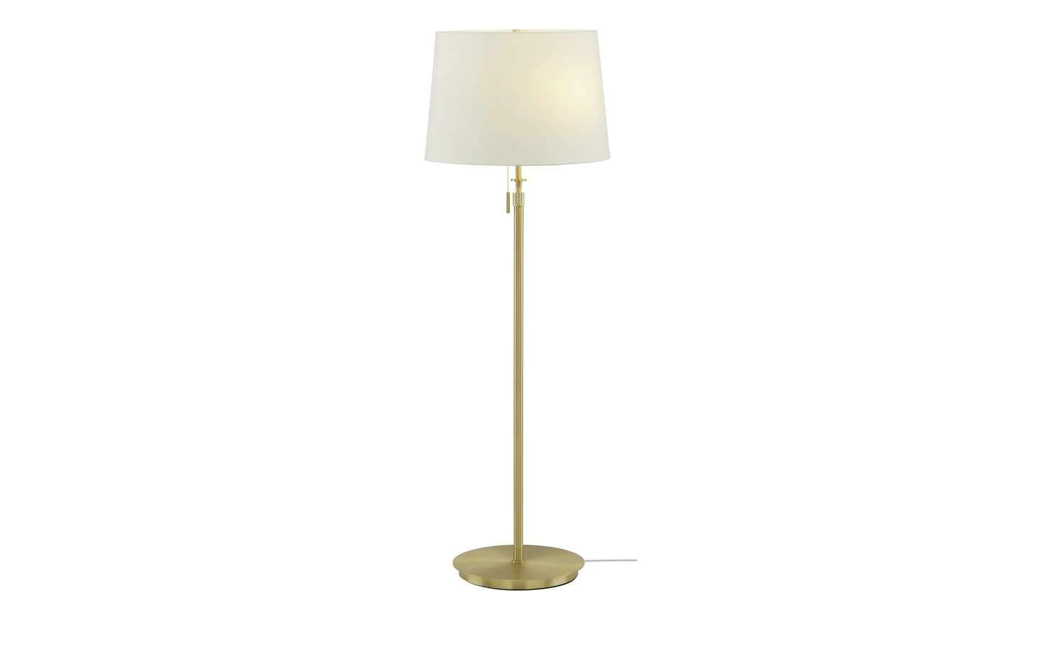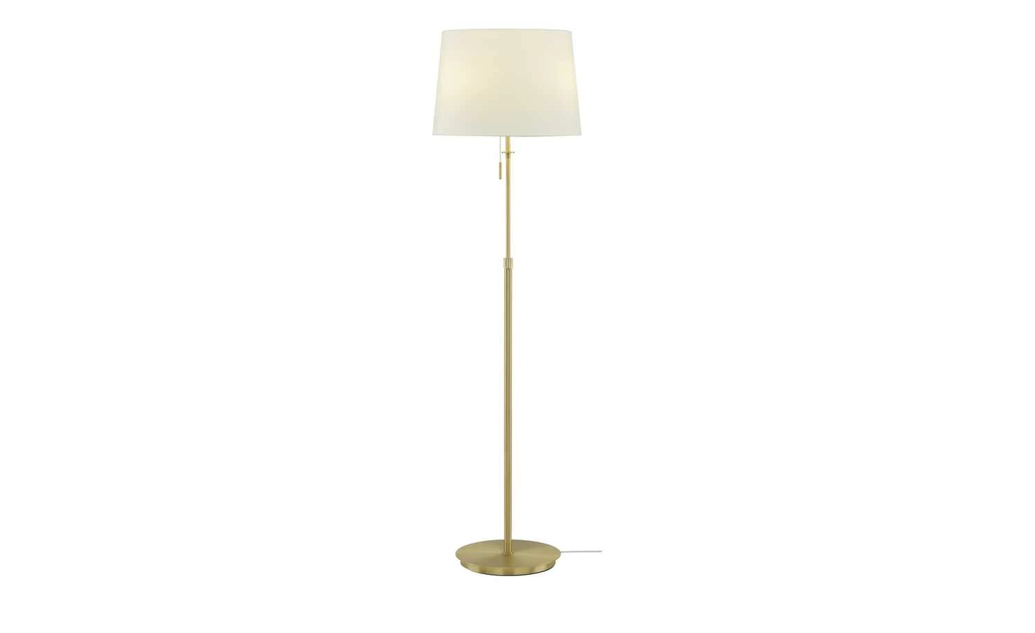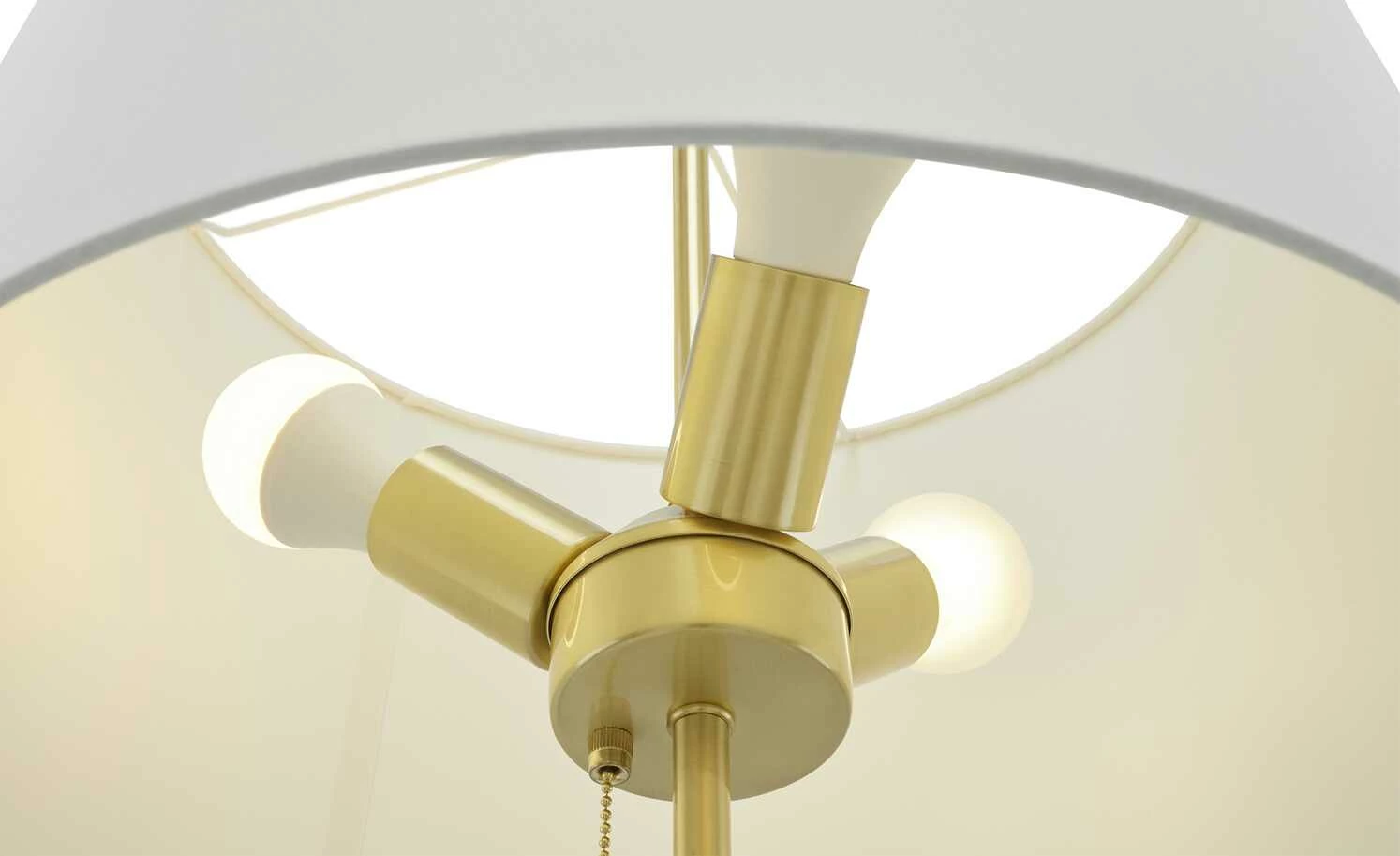 Trio Stehleuchte, 3-flammig, Messing-matt, Stoffschirm weiß