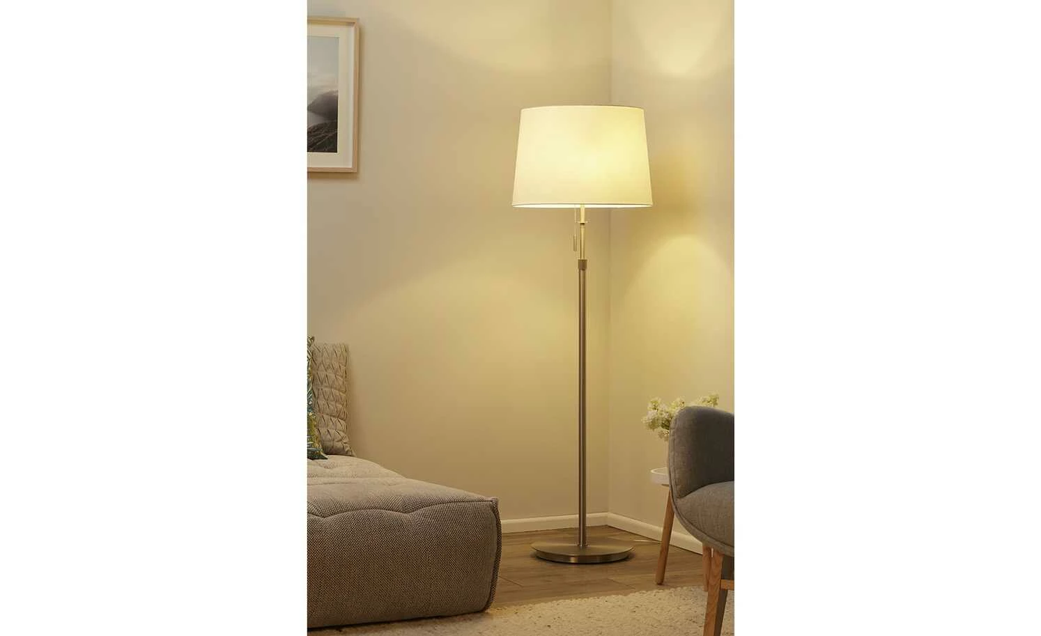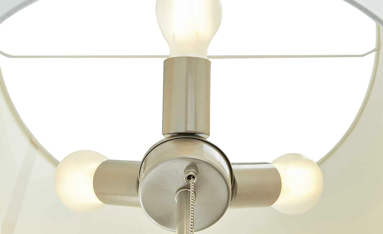 Trio Stehleuchte, 3-flammig, Nickel-matt, Stoffschirm weiß