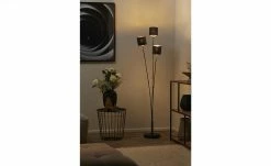 Trio Stehleuchte, 3-flammig, schwarz, Stoffschirm schwarz/gold