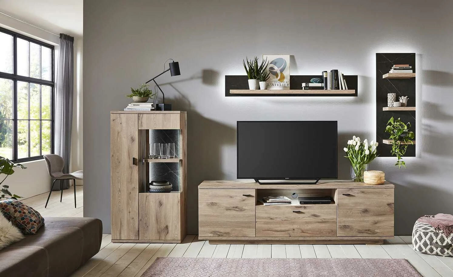 - nicht im Lieferumfang enthalten: Wohnwand (separat erhältlich unter „Zubehör“)