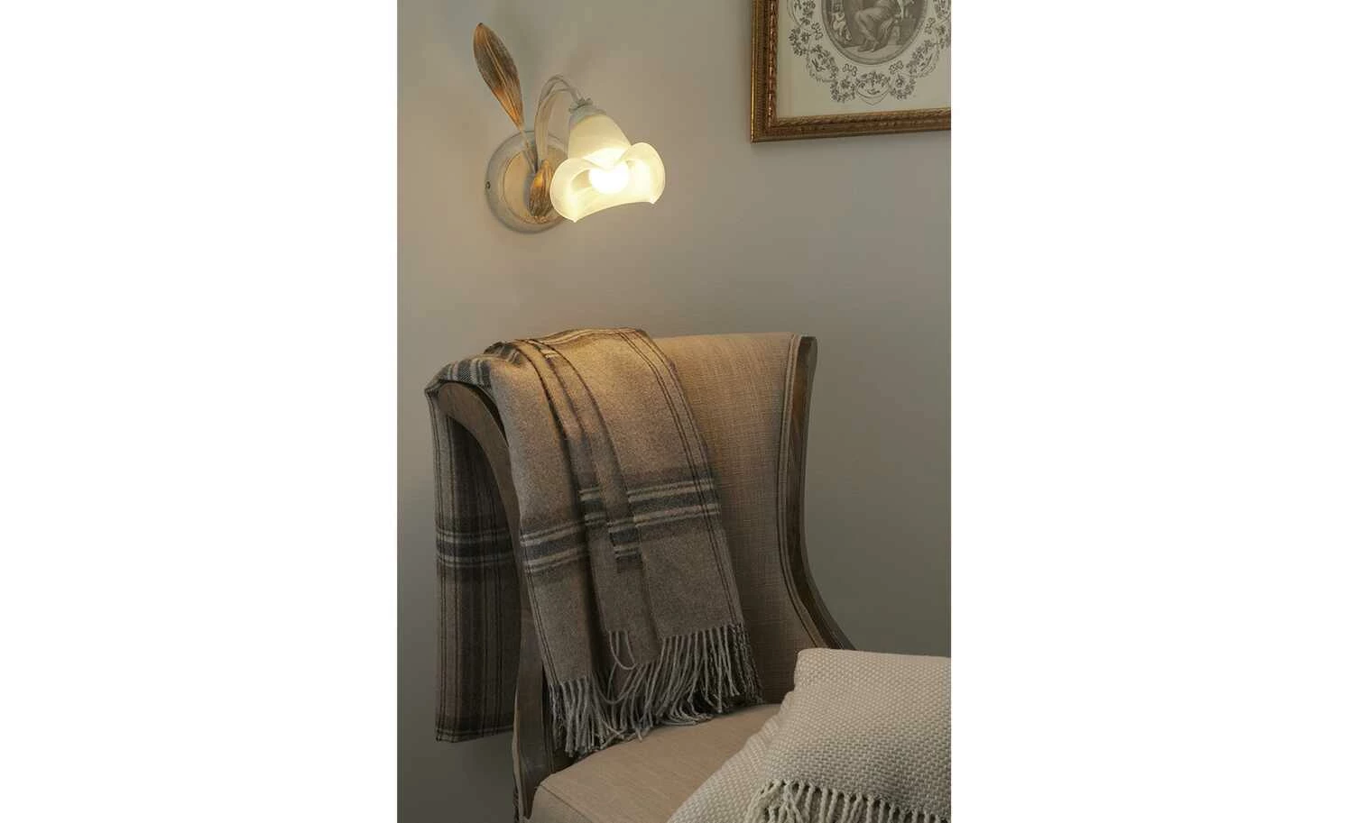 Wandleuchte, 1-flammig, weiß/ gold abgesetzt