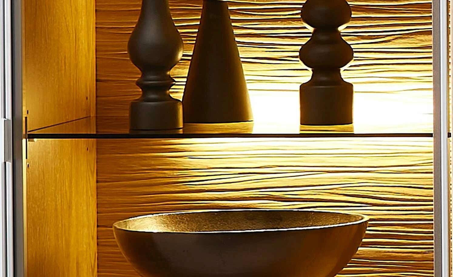 - Lieferumfang / mitgeliefertes Zubehör: 3er LED-Rückwandbeleuchtung ca. 33 cm im Set mit Trafo, dimmbarem Handschalter, Zuleitung und 6-fach Verteiler für Vitrine, Hängeelement und TV-Element
